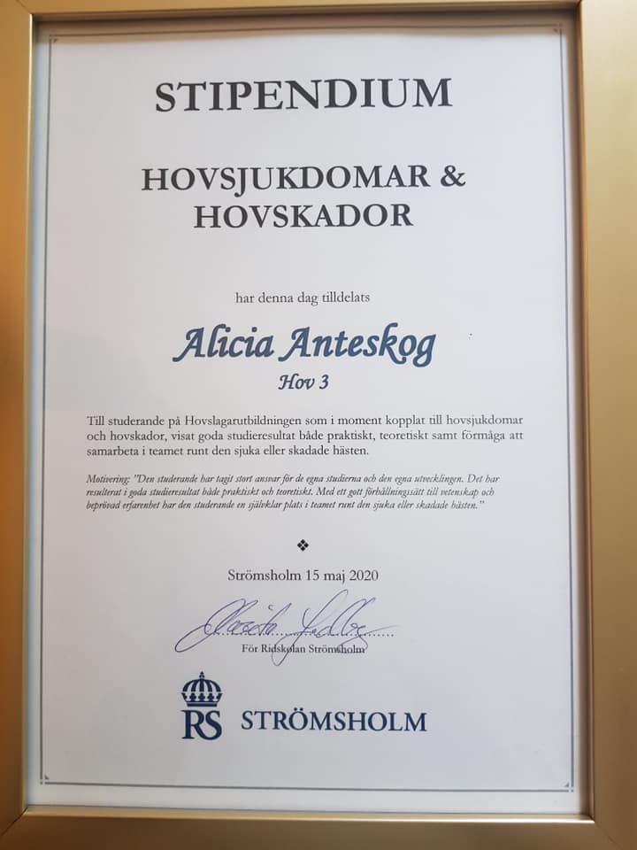 2017 började jag utbildningen till hovslagare på Strömsholm och tog examen 2020. Efter examen jobbade jag i Uppsala som hovslagare innan jag 2021 flyttade hem till Härjedalen igen där jag nu bor och arbetar.